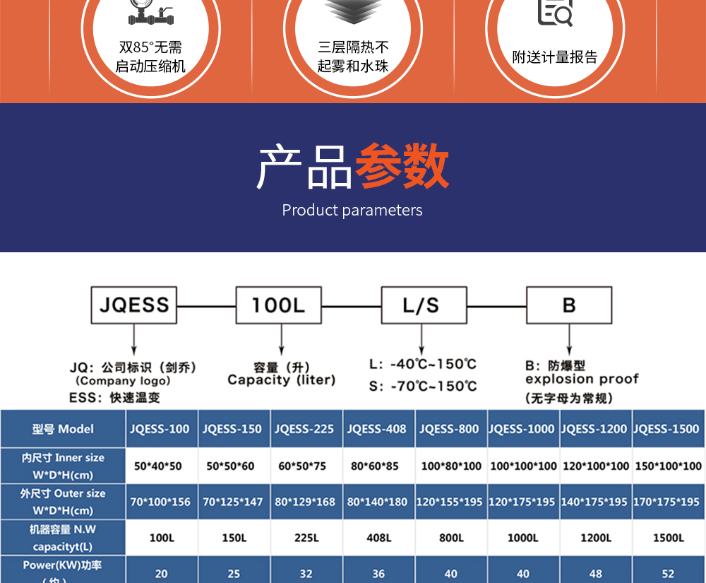 快速溫變?cè)囼?yàn)箱型號(hào)命名說(shuō)明 及 參數(shù)表