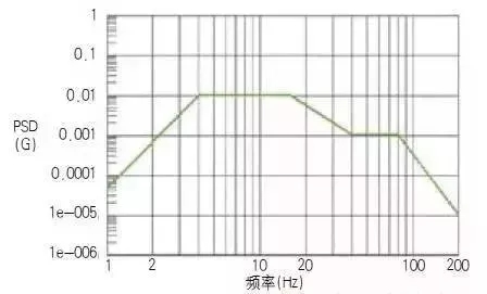 隨機(jī)振動(dòng)試驗(yàn)具體測(cè)試方法《GB/T 4857.23-2012》中有介紹,這里只介紹三個(gè)力學(xué)條件量值功率譜密度 (PSD)、加速度均方根 (Grms) 和振動(dòng)時(shí)間。國(guó)內(nèi)外通過(guò)采集運(yùn)輸數(shù)據(jù),利用統(tǒng)計(jì)學(xué)制定出隨機(jī)振動(dòng)譜。以ASTM D4169-08為例,如圖: